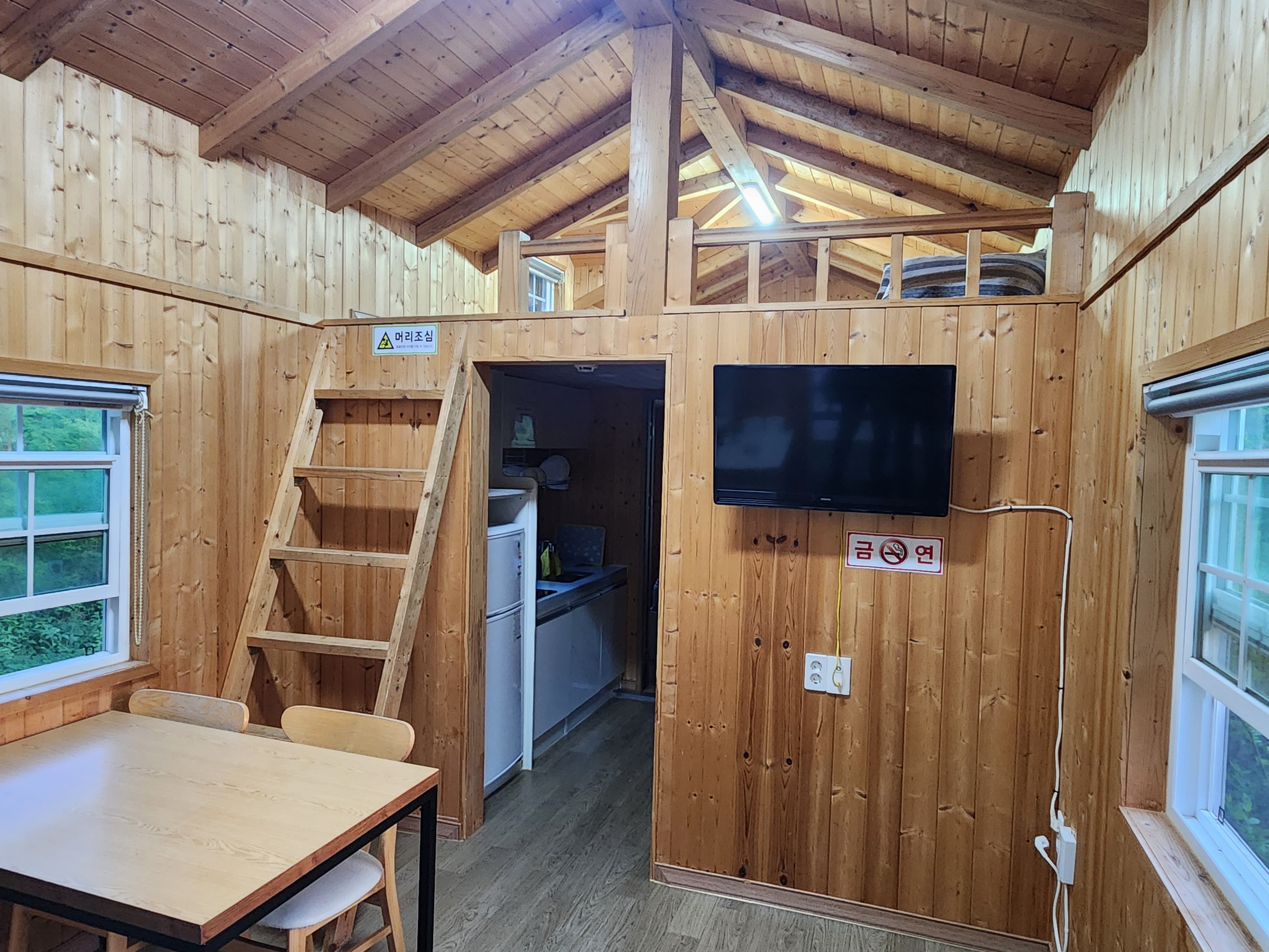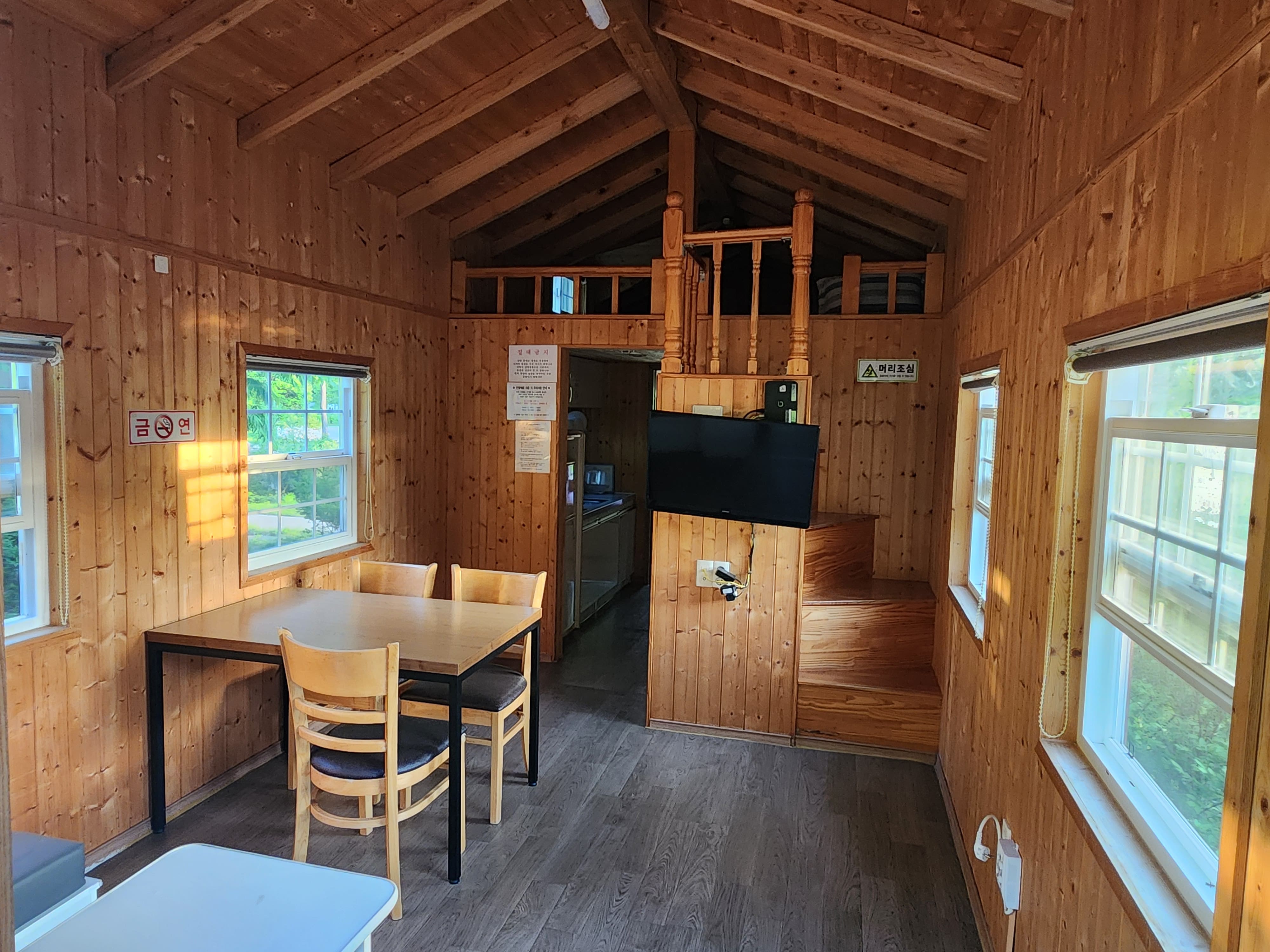 안락한 복층 구조의 캐빈하우스에 별이 쏟아지는 밤하늘을 즐기며 가족과 힐링의 시간을 가질 수 있습니다.