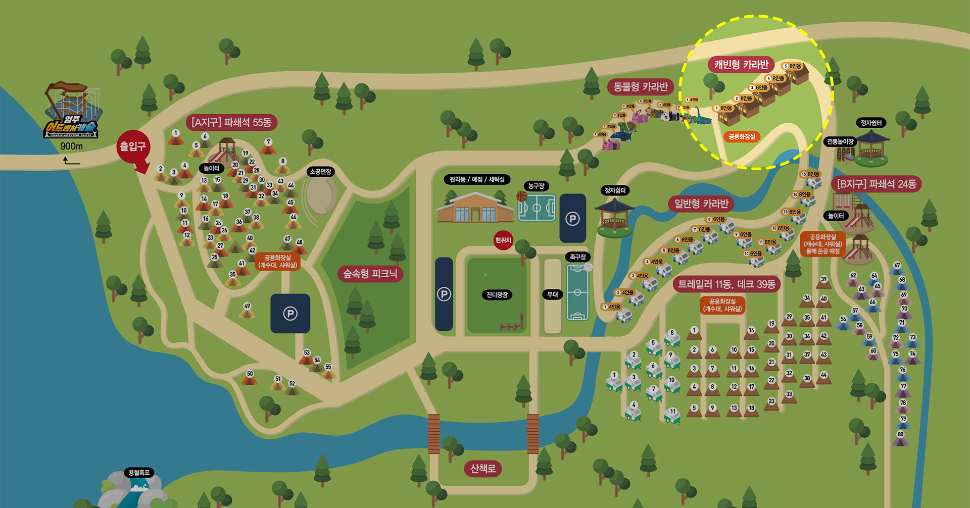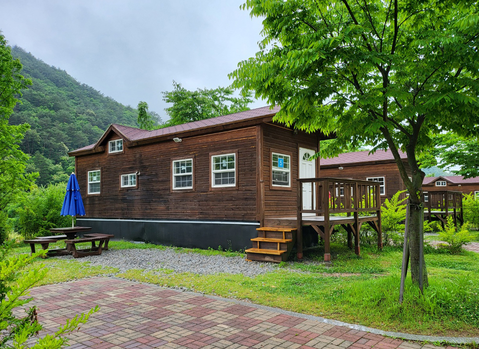 최근의 여행 트렌드를 반영해 조성한 숲 속 캠핑장 캐빈하우스는