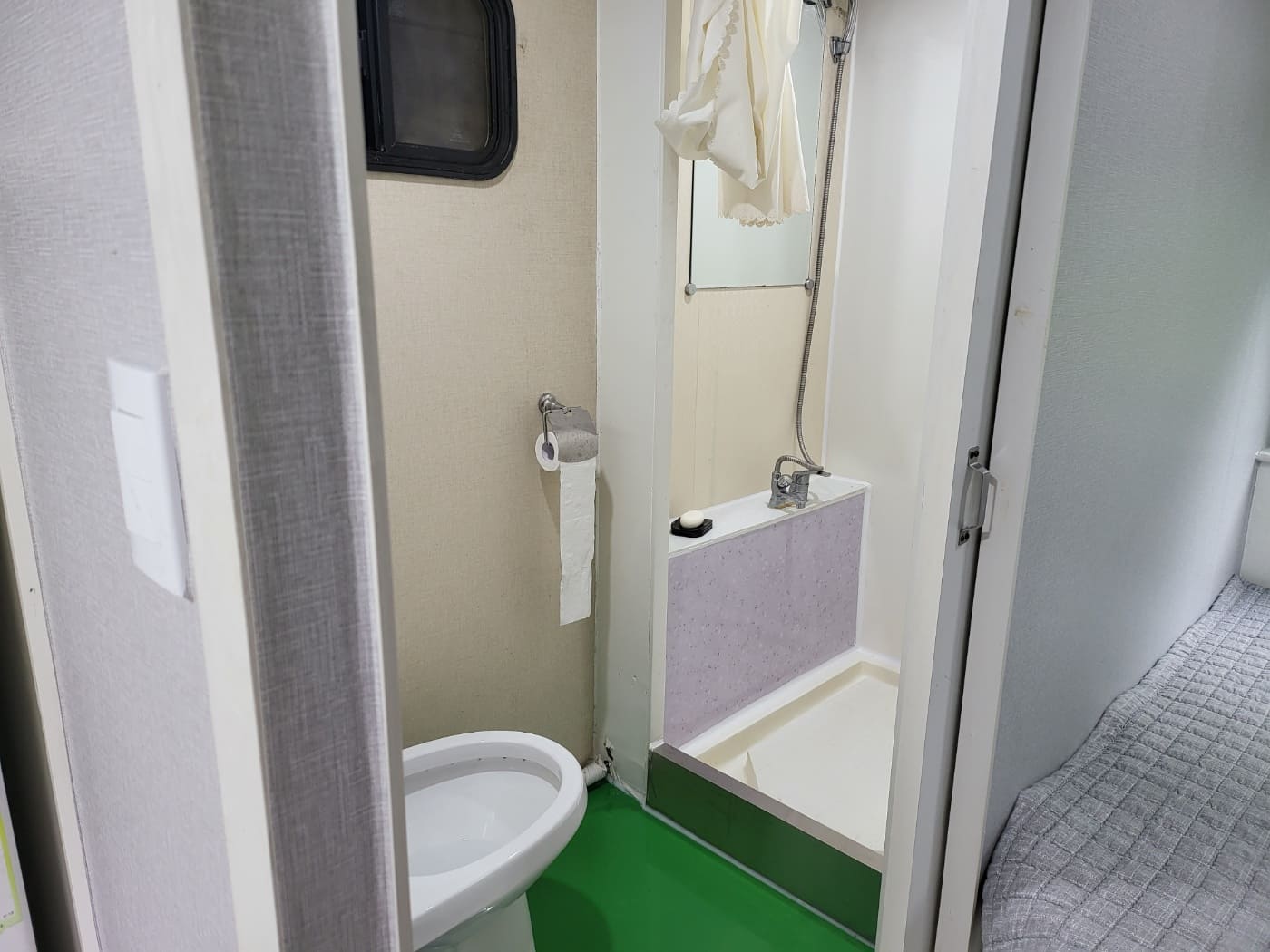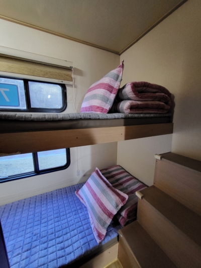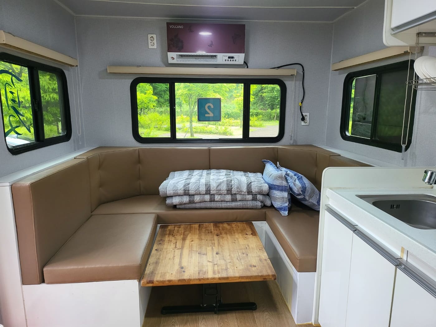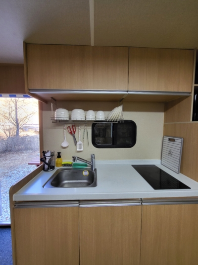 카라반 내부에 TV와 넓직한 침대, 벽걸이 에어컨이 설치되어 있으며, 가볍게 즐기실 수 있도록 주방도구와 인덕션, 전자밥솥, 전자레인지, 냉장고, 샤워실, 화장실 등이 준비되어 있습니다.