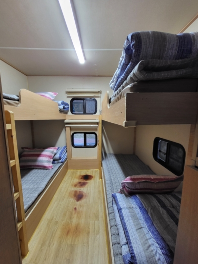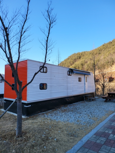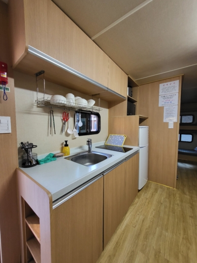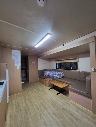 | 내부 부대시설 | 화장실, 샤워장, 개수대, 온수기, 냉장고, 전기밥솥, 전자레인지, 에어컨, TV, 이불, 베개, 침대커버,밥그릇, 국그릇, 접시, 컵, 칼, 국자, 가위, 뒤집개, 도마, 수저, 피크닉테이블, 소화기 |