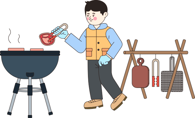 ● 카라반 및 캐빈하우스의 고기를 굽는 행위는 야외지정 테이블과 그릴에서만 가능합니다.